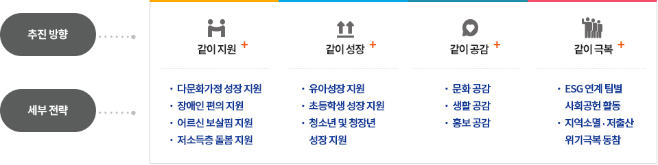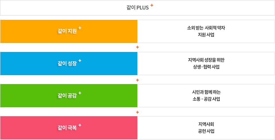 - 지역사회공헌 협력 네트워크 강화를 통한 적극적인 같이 Plus⁺사업 추진